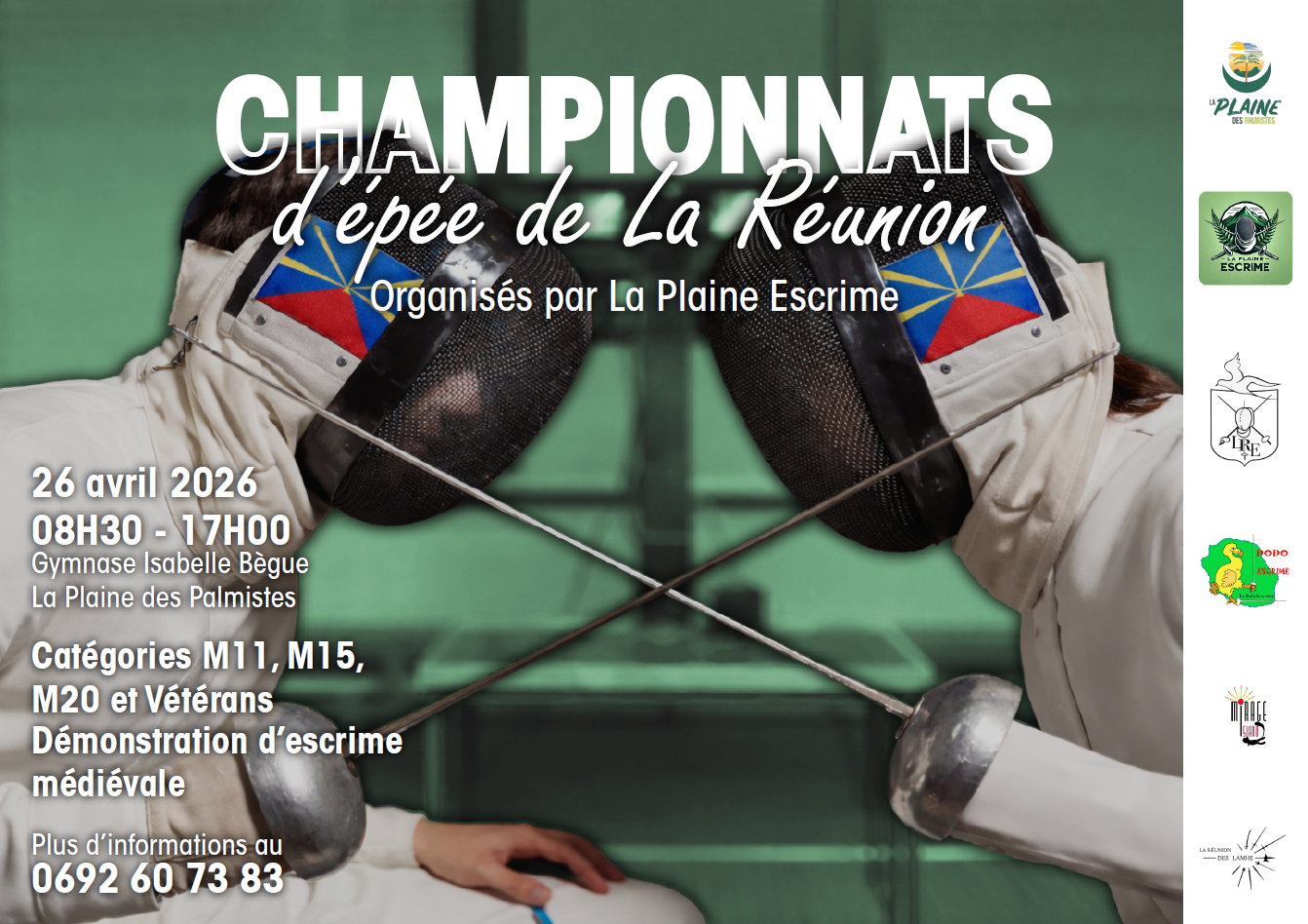 L’association La Plaine Escrime vous invite aux Championnats d’épée de la Réunion, qui auront lieu :