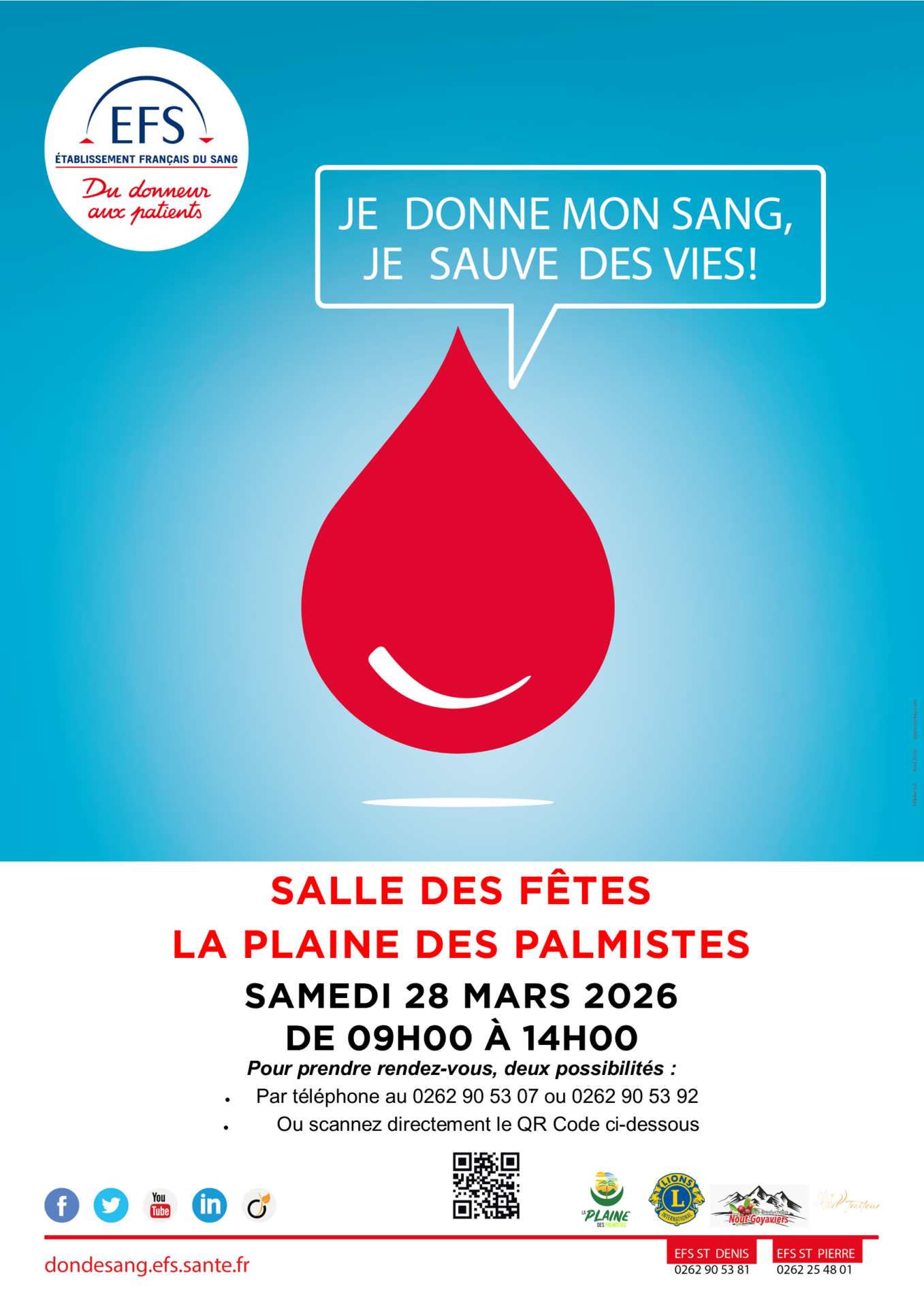 L’EFS organise une collecte de sang à La Plaine des Palmistes :
